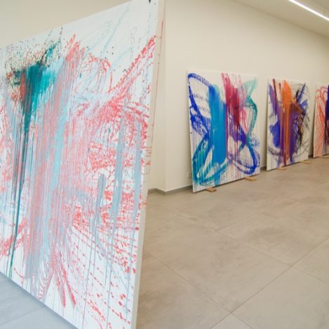 Jeroen Doorenweerd Meets Gutai brings together these two worlds, displaying video footage of performances by Gutai artists including Shimamoto Shōzō, Shiraga Kazuo en Tanaka alongside Doorenweerd’s latest series of paintings, Ultramarine and Pinkorange.