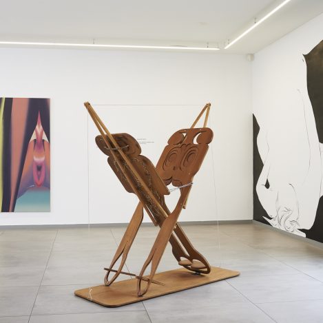 The work of Hadassah Emmerich and Gerrit van Bakel focuses much more on the physical aspect. In a single image, each of Emmerich’s sensual paintings lays bare the accessibility as well as the inaccessibility of the other. Van Bakel’s approach can be seen as an acknowledgement of all our inabilities and shortcomings and, at the same time, an effort to compensate for them. He seems to reach out to the viewer through his sculptures, which he literally called “Accessoriess for encounters”. In the artist’s words, “An encounter is a removal of boundaries.”