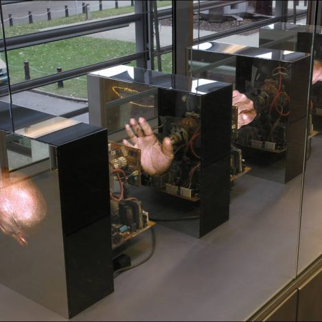 As a performance artist in the 1980s, Peter Bogers (b. 1956) was part of the first generation of Dutch artists to actively make use of video. He originally employed it to record his performances but later began using it as a medium in its own right that enabled him to manipulate movement, space, sound and the perception of time. The videos and audio installations he has made in the years since, like his performances, always depict and/or aim to bring about a physical experience, either in himself or in the viewer. Bogers’ videos track the minute movements of hands and fingertips, linger on isolated, floating body parts, and use endlessly repeated and slowed-down images to create a palpable vacuum in time and space. His penetrating audio installations seem to render sound tangible.