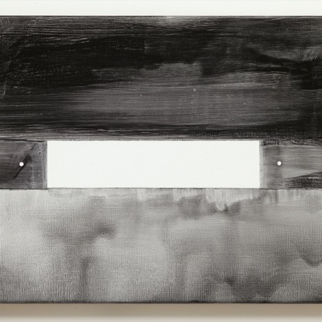 The paintings of Robert Holyhead (b. 1974, UK) are striking in their clarity and lightness. Monochromatic, half-transparent painted surfaces are kept in check by a white ground that forms an inextricable part of the work. At first sight, the paintings may seem abstract and minimalist, but on closer viewing, one sees that these terms are inadequate descriptors. Abstract? Holyhead says he wouldn’t know how to go about making a purely abstract painting; the world is distinctly present in his work. Minimalist? These paintings can just as easily be called opulent.